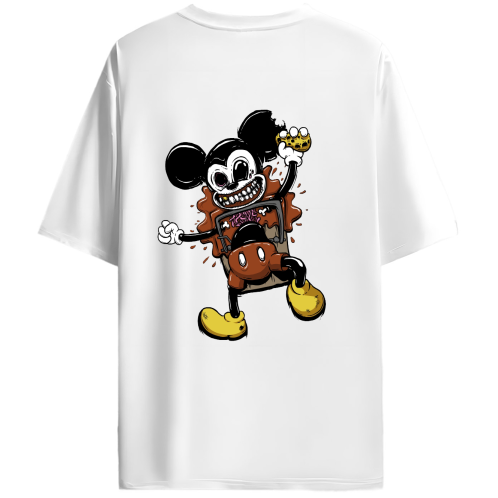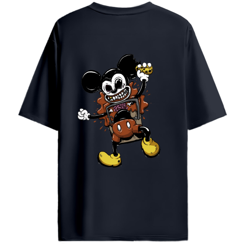 Turn nostalgia into nightmare with the Creepy Mickey Mouse Half Sleeves T-Shirt. This bold design reimagines the classic cartoon icon with a dark, twisted edge—distorted features, eerie eyes, and a sinister smile that gives off pure horror vibes. A perfect clash of childhood innocence and gothic creepiness, this tee is built for those who love to stand out. Crafted from premium 180 GSM cotton, it guarantees comfort, durability, and that oversized streetwear look. Fabric: 100% premium cotton, 180 GSM Fit: womens oversized, relaxed streetwear silhouette Design: High-quality front print – “Creepy Mickey Mouse” horror artwork Feel: Soft, breathable & long-lasting Style: Perfect for gothic, horror, and bold streetwear aesthetics Creep it real. Own the Creepy Mickey Mouse.